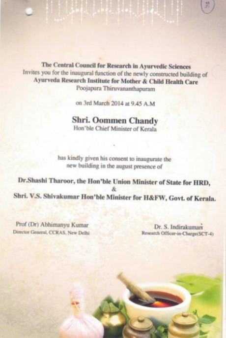 2010 : Renamed to Ayurveda Research Institute for Mother and Child Health Care (ARIMCHC), Thiruvananthapuram